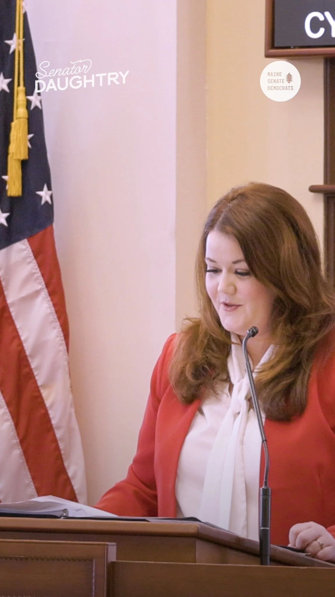 Senator Matthea Elisabeth Larsen Daughtry is a small business owner from Brunswick who was unanimously elected to serve her first term as President of the Maine Senate in December 2024. She was nominated by Republicans and Democrats. President Daughtry is the first person from Brunswick to serve in this role since 1831 and the first woman Senate President born in Maine. She is the youngest woman Senate President in Maine history.